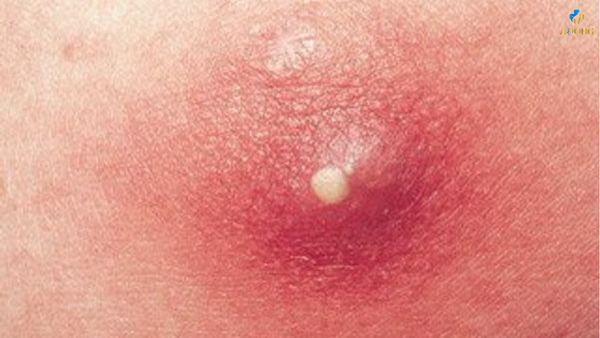 • Màu đỏ: Khu vực xung quanh mụn có thể đỏ và sưng tấy.
