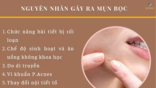 Bên cạnh đó, chế độ ăn uống không hợp lý, stress, lạm dụng mỹ phẩm hay không chăm sóc da đúng cách cũng góp phần vào sự hình thành mụn bọc.