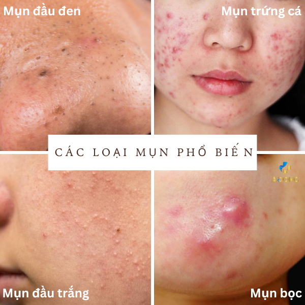 • Mụn trứng cá: Là loại mụn phổ biến nhất, có thể gây đau nhức và để lại sẹo nếu không điều trị kịp thời.