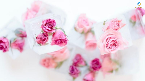 • Trộn một ít nước hoa hồng với nước lọc, sau đó cho vào khay đá và để đông lại.