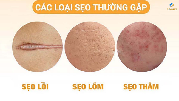 Có nhiều loại sẹo do mụn khác nhau, nhưng phổ biến nhất là sẹo lồi, sẹo lõm và sẹo thâm.